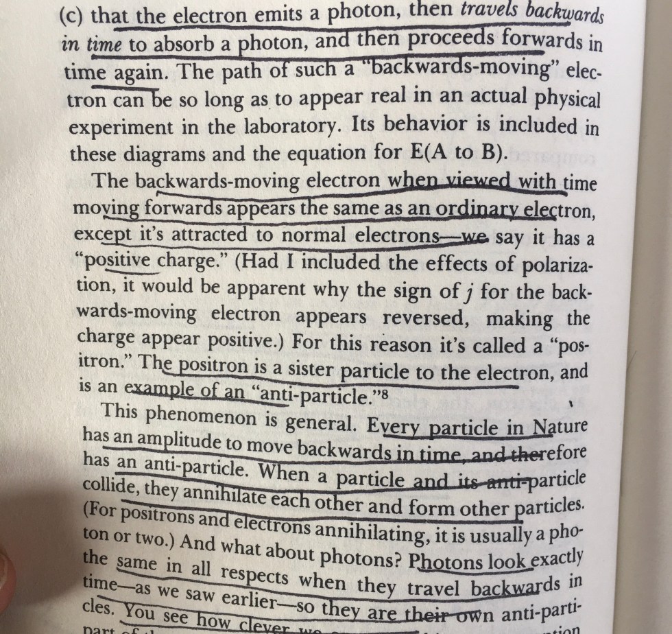 “Every particle in nature has an amplitude to move backwards in time…”
