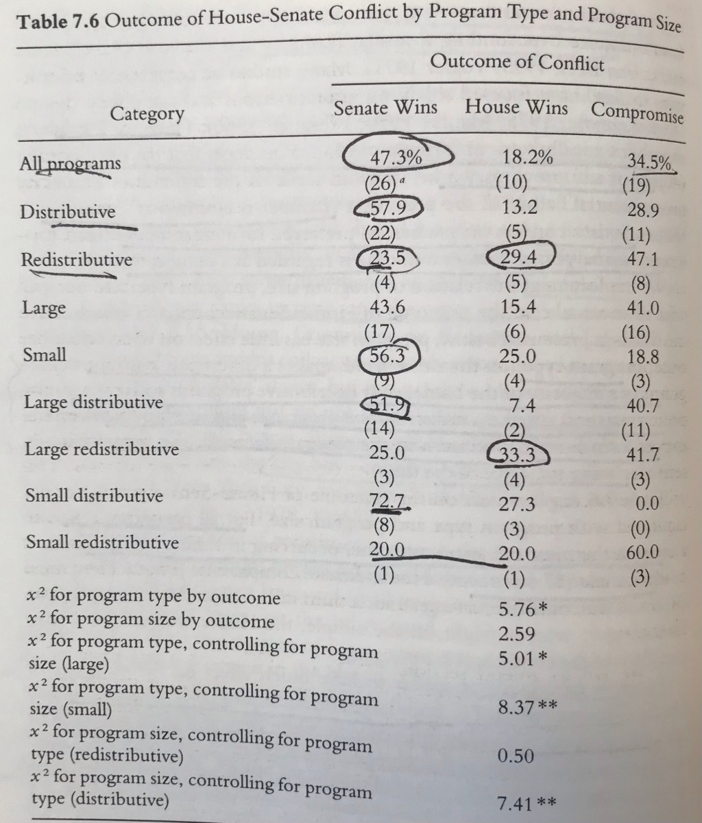 What the Senate wants the Senate usually gets. Senate 259% more likely to win battles with House b/w 1914 and 1996