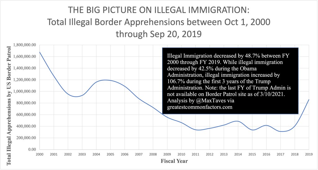 as not seen on tv by MaxMarch 10, 20219:37 am the number of immigrants apprehended at us borders has fallen by 48.7% between 2000 and 2019. however, while it fell by 42% during the obama admin, it increased by 106% during the trump admin. Share this: Click to share on Reddit (Opens in new window) Reddit Click to share on Pinterest (Opens in new window) Pinterest Click to share on X (Opens in new window) X Click to share on Facebook (Opens in new window) Facebook Click to print (Opens in new window) Print More Click to share on LinkedIn (Opens in new window) LinkedIn Like Loading... Related